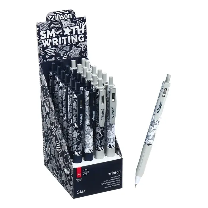 Ручка шариковая автоматическая 0.7 мм, Vinson, синяя масляная, резиновый держатель