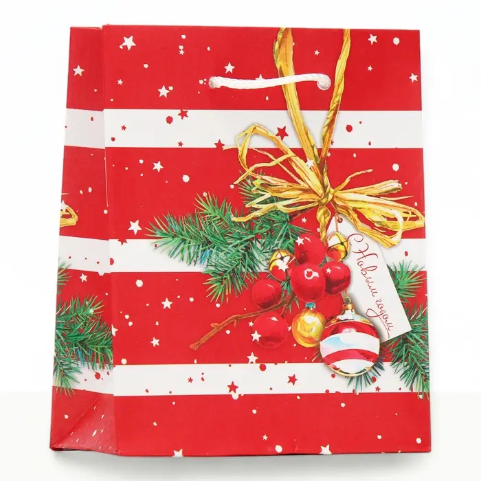 - Этот удивительный подарочный пакет станет идеальным дополнением к вашему новогоднему подарку, придавая ему шикарный и праздничный вид.