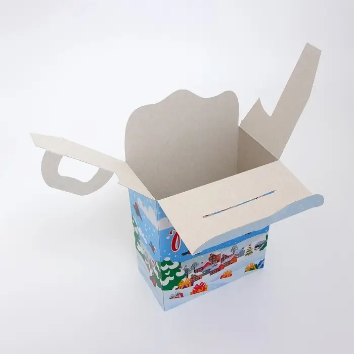 Коробка выполнена из качественных материалов, которые обеспечивают сохранность содержимого. Она имеет яркий и красочный дизайн, который отражает атмосферу Нового года.