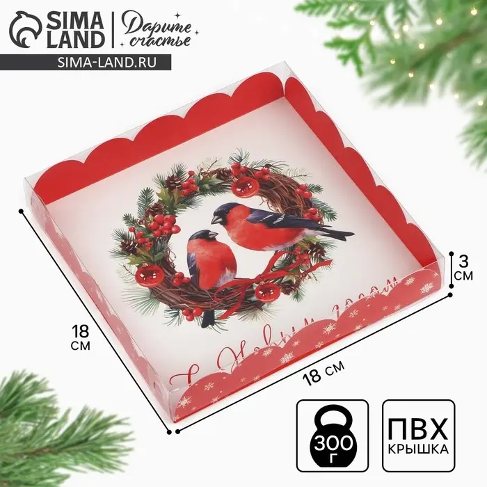 Коробка для кондитерских изделий с пластиковой крышкой «С Новым годом», 18 х 3 см