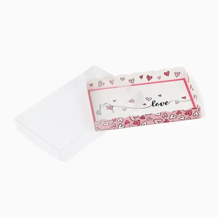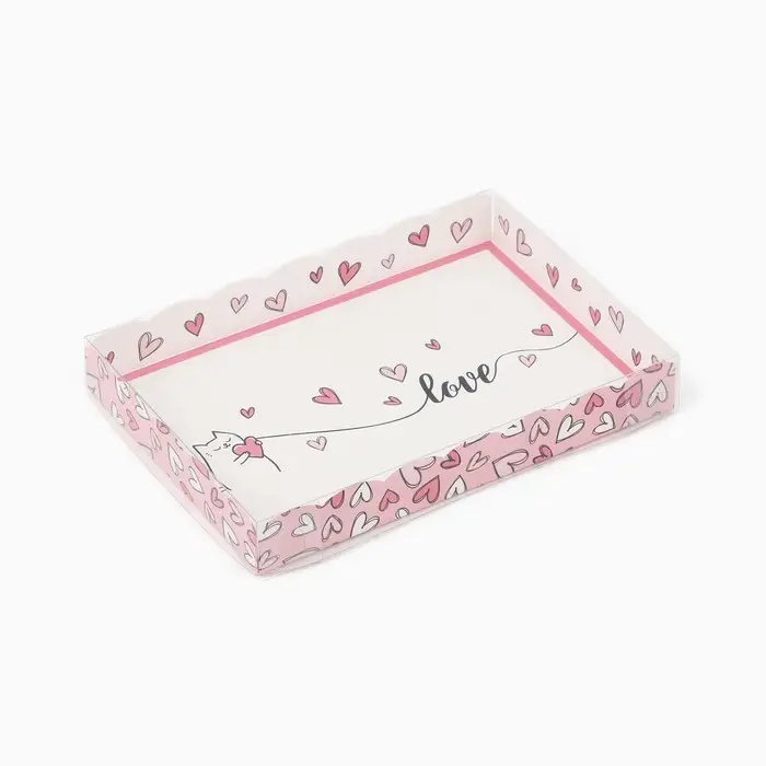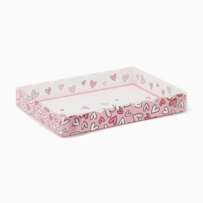Коробка для кондитерских изделий с пластиковой крышкой «Сердца», 22 х 15 х 3 см