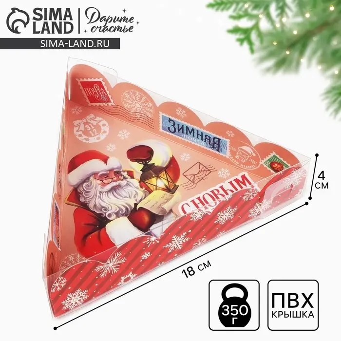 Коробка для кондитерских изделий с пластиковой крышкой «Зимняя почта», 18 х 4 см