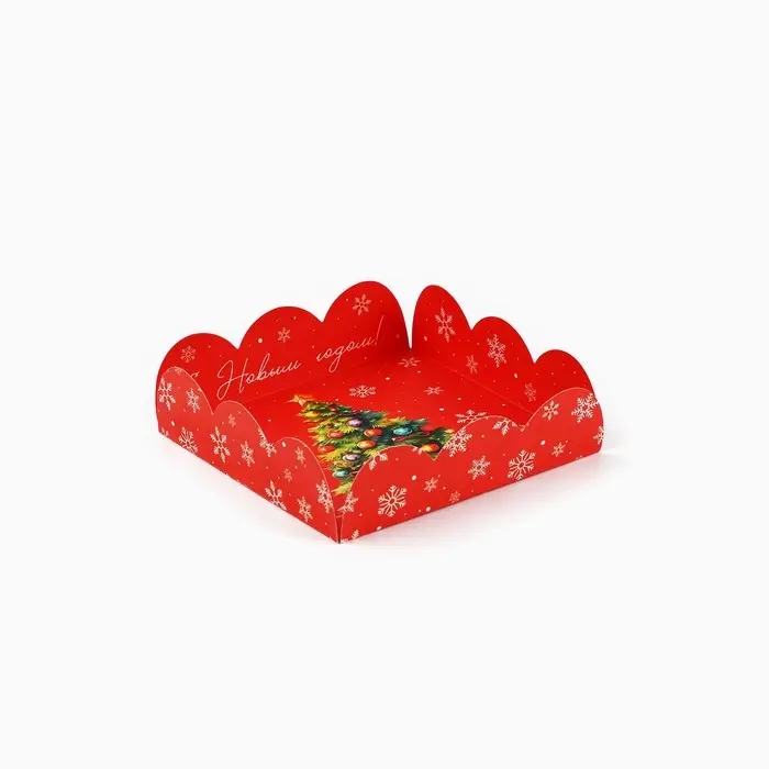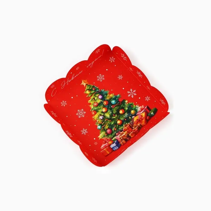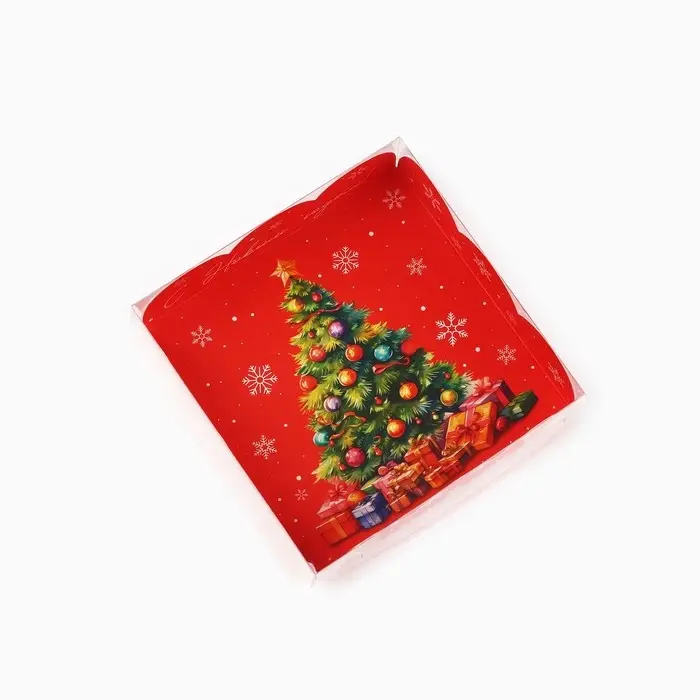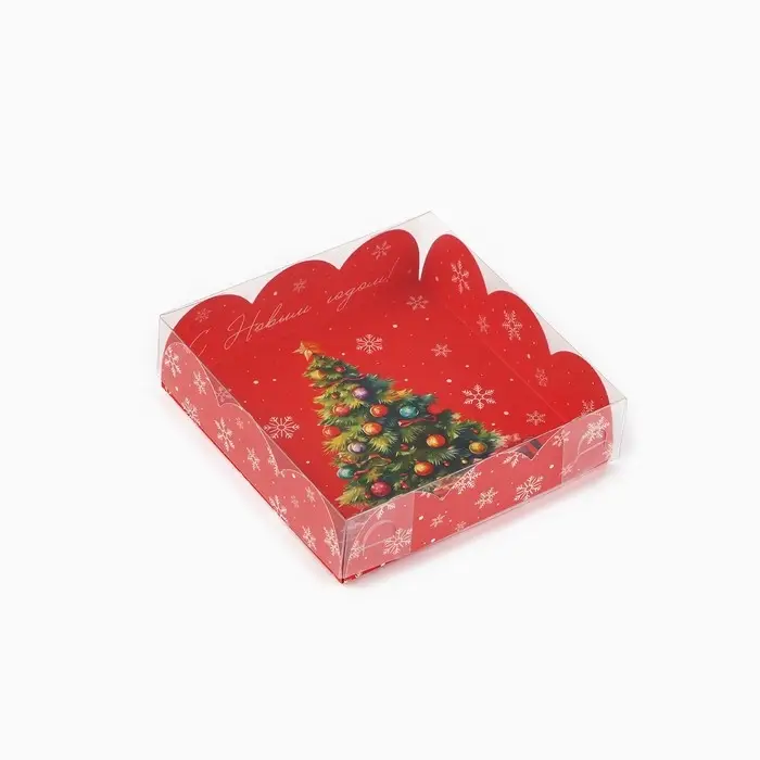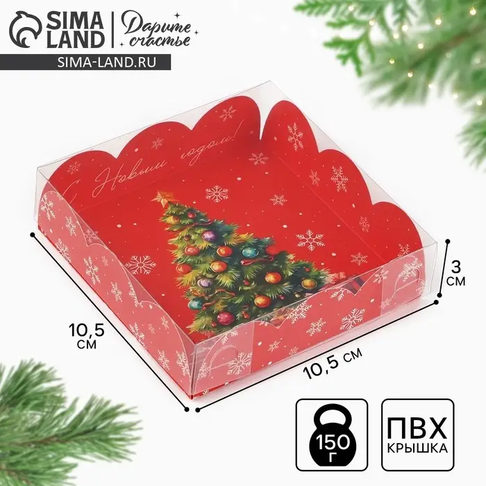 Коробка для кондитерских изделий с пластиковой крышкой «С Новым годом!», ёлка, 10.5 х 10.5 х 3 см