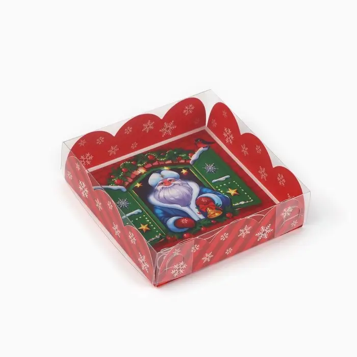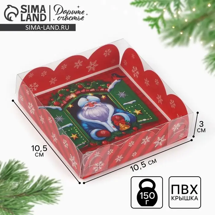 Коробка для кондитерских изделий с пластиковой крышкой «Счастья в Новом году», 10.5 х 10.5 х 3 см