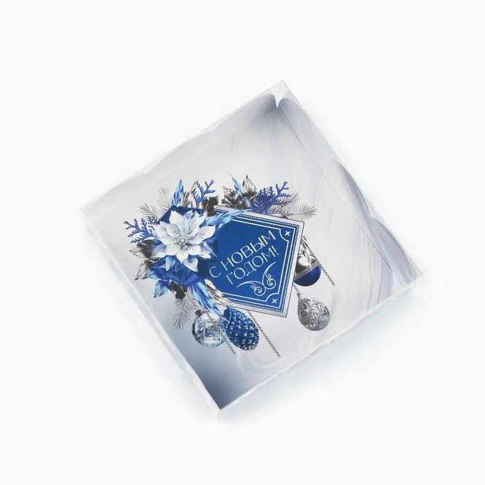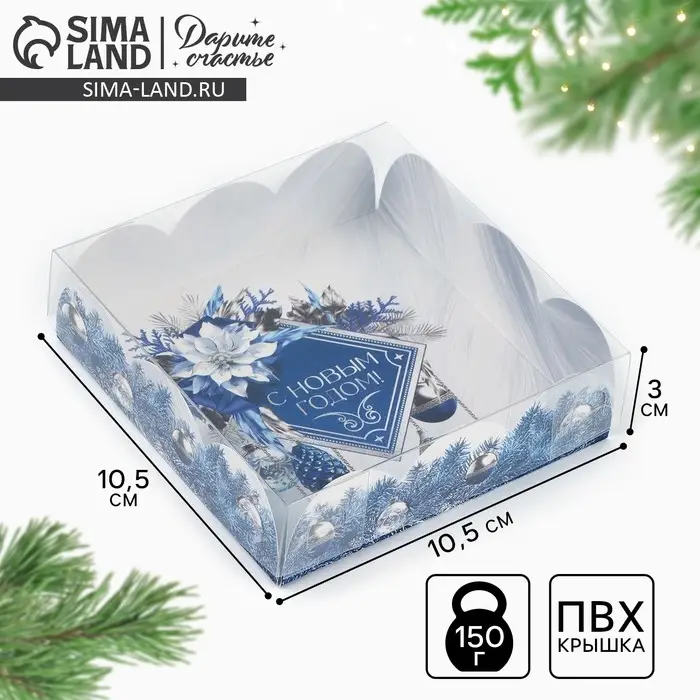 Коробка для кондитерских изделий с пластиковой крышкой «С Новым годом!», 10.5 х 10.5 х 3 см