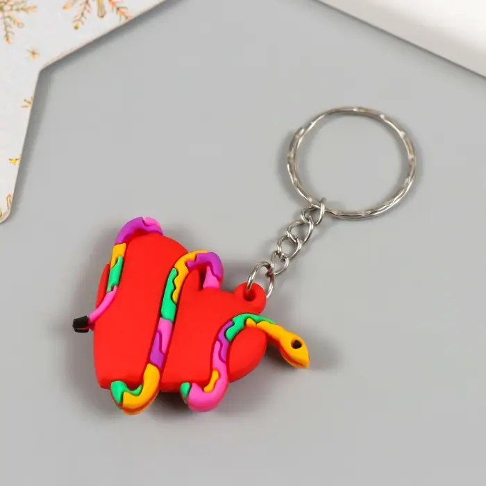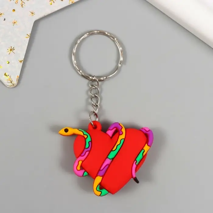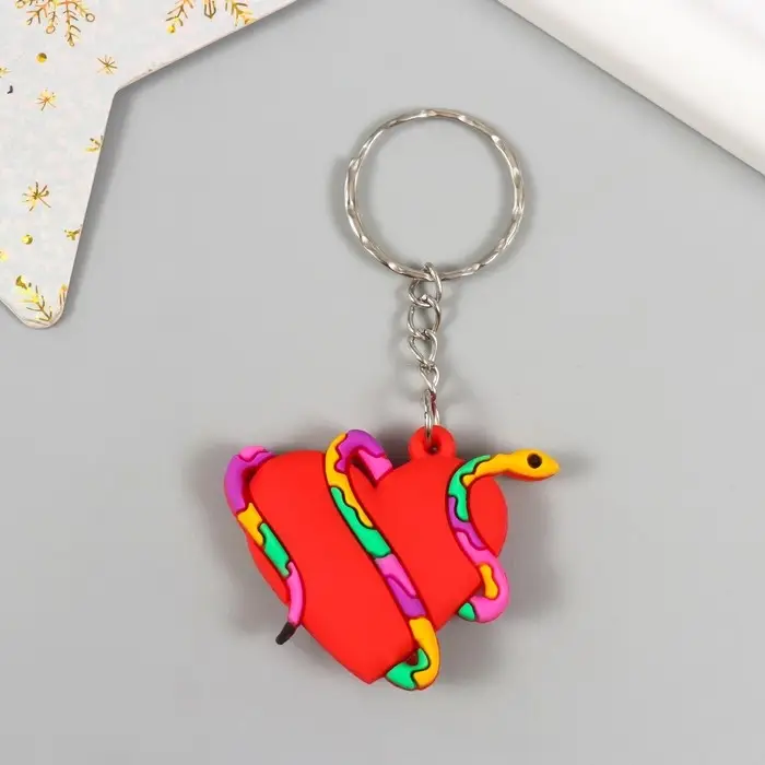 Брелок резина "Пятнистая змея обвивает сердце" 4х3,5 см