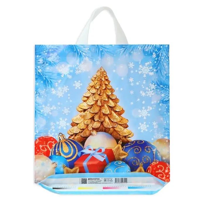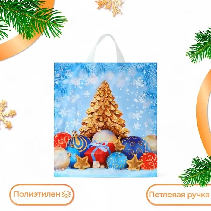 Пакет новогодний полиэтиленовый с петлевой ручкой размером — идеальный вариант для упаковки подарков и сувениров.