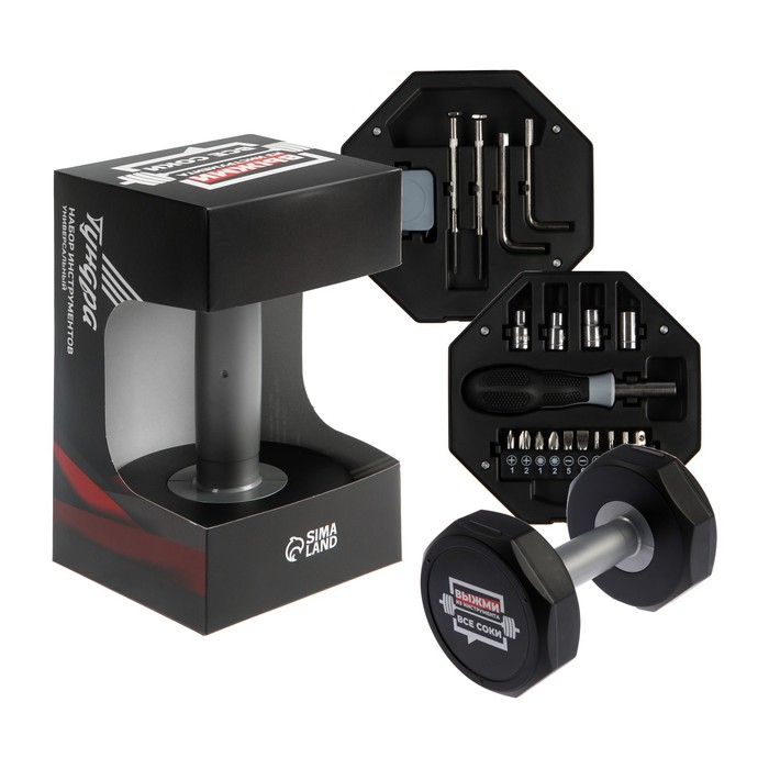 Набор инструментов ТУНДРА, подарочный пластиковый кейс "Гантель", 20 предметов