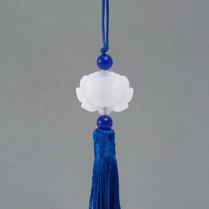 Подвеска текстиль, пластик "Кисть. Лотос" синяя 1,2х2,7х14,5 см