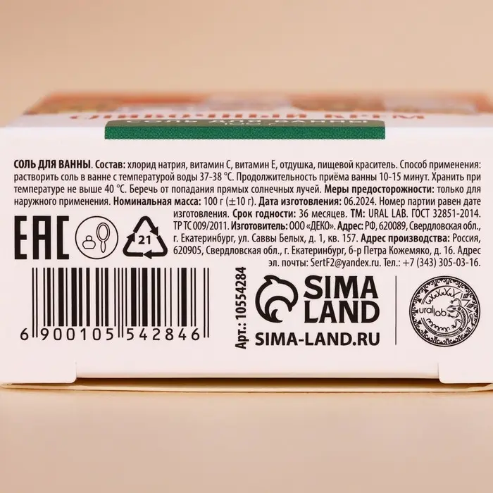 Соль для ванны URAL LAB, 100 г, аромат сливочного крема