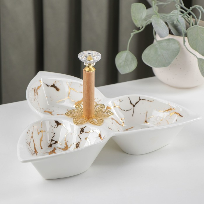 Менажница керамическая 3 ячейки «Марбл», 160 мл, 25,3×23×4,5 см, цвет белый