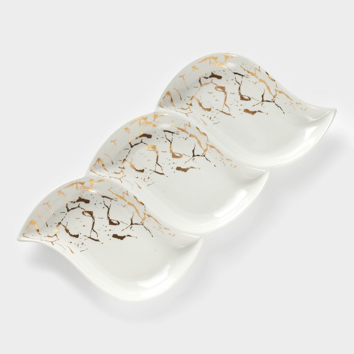 Менажница керамическая 3 ячейки «Марбл», 160 мл, 25,3×23×4,5 см, цвет белый