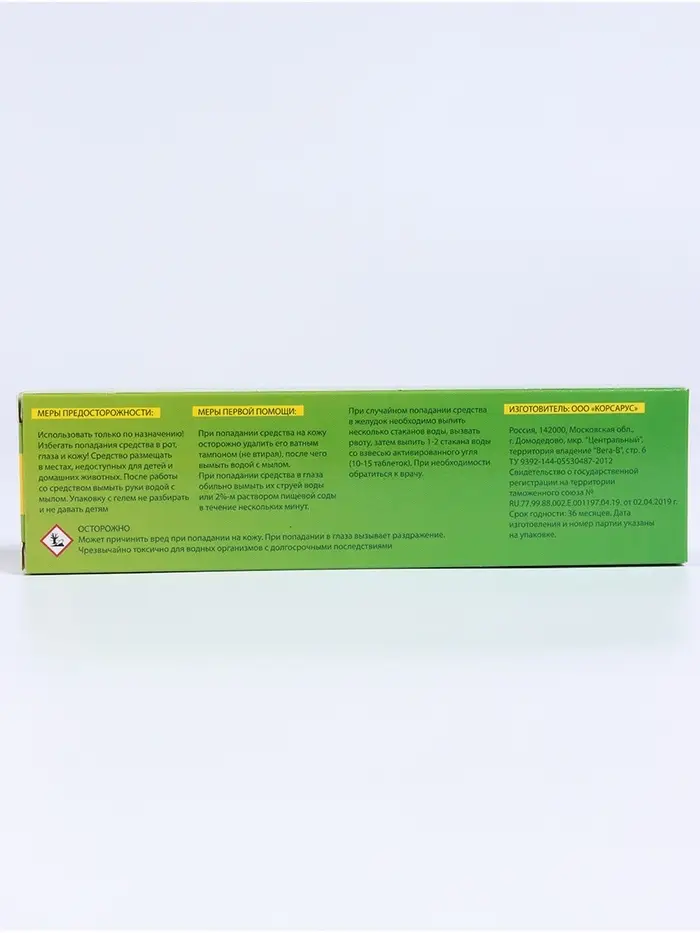 - Эффективность: убивает насекомых, контактирующих с гелем, и тех, кто попадает в контакт с отравленными особями.