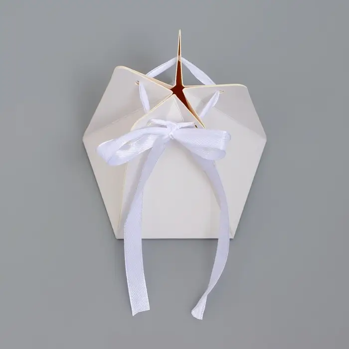 Белый цвет коробки придает ей элегантный и классический вид, что делает ее подходящей для различных событий, включая свадьбы, дни рождения и корпоративные мероприятия.