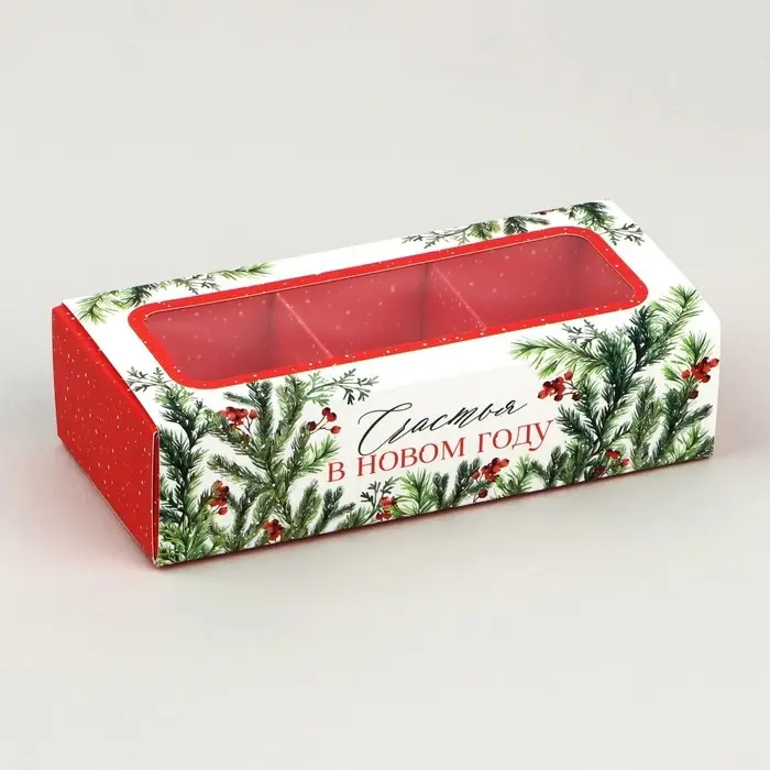 Коробка под 3 конфеты с ячейками «Счастье», 13.3 х 3.3 х 5.8 см