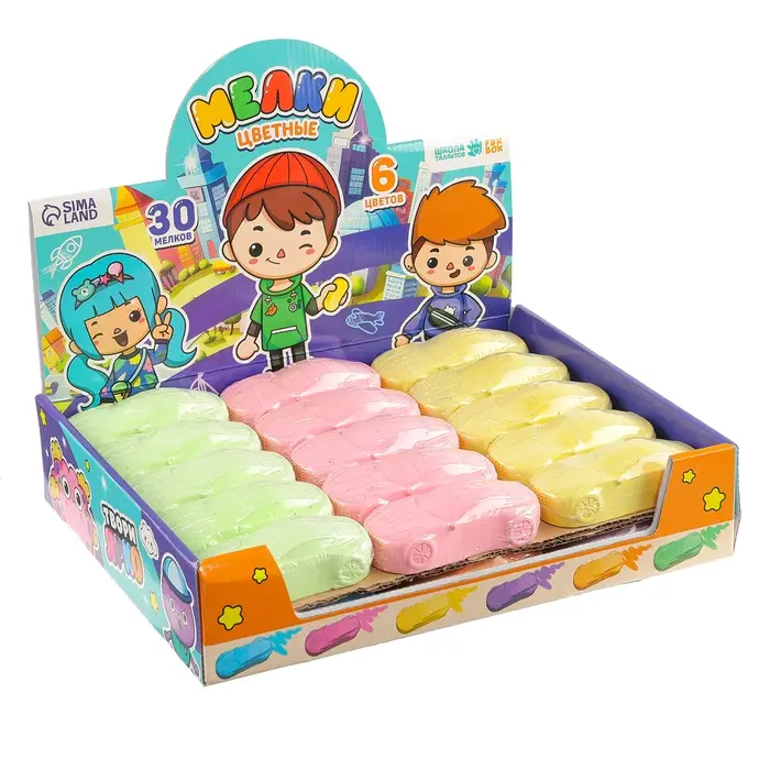 Мелки цветные для рисования на асфальте «Машинка», 6 цветов, фасовка по 30 шт
