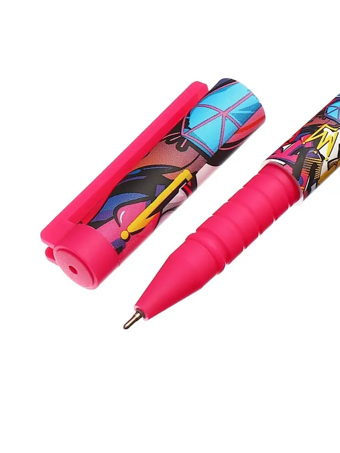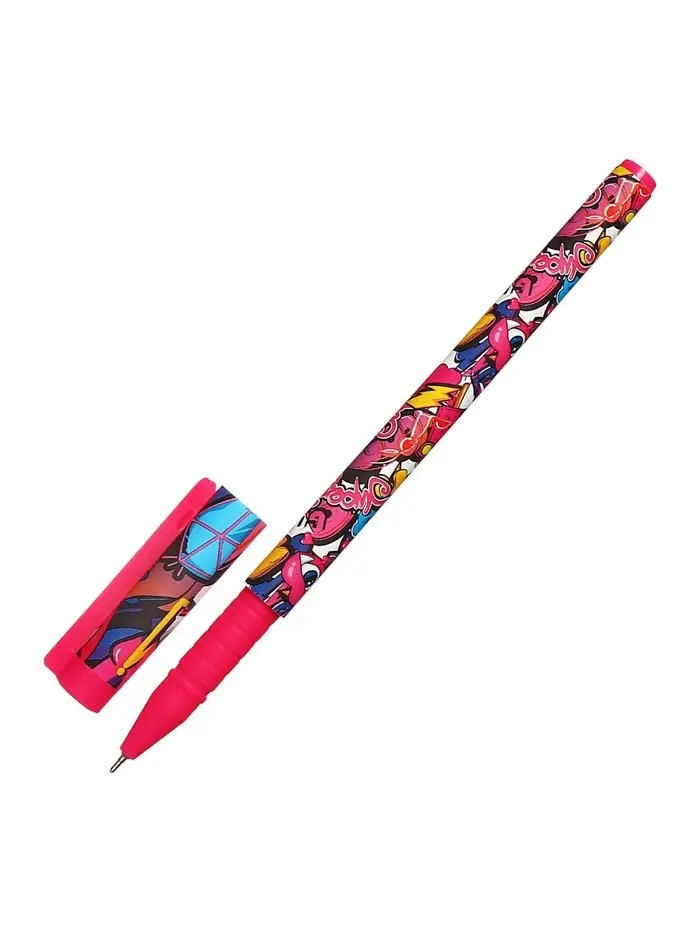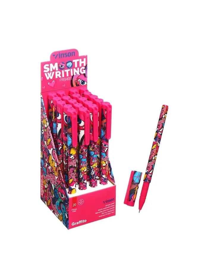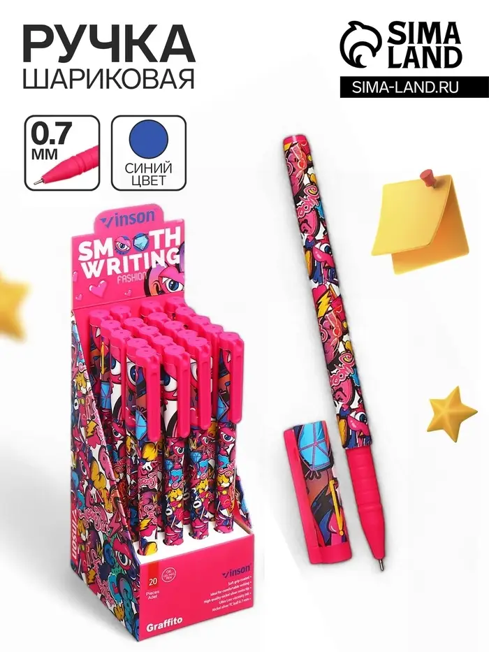 Ручка шариковая 0.7 мм синяя масляная, Vinson корпус софттач с рисунком (штрихкод на штуке)