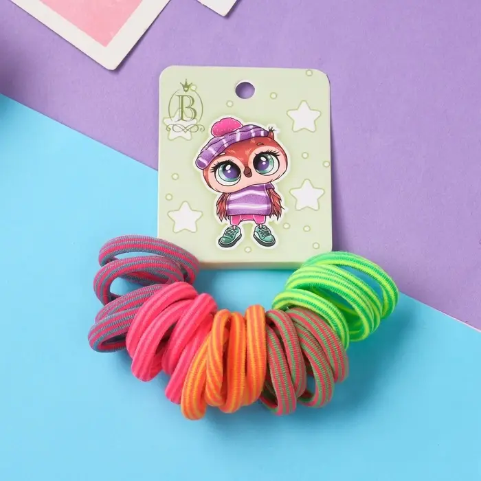 Резинка для волос "Венди" (набор 20 шт) шапочка с помпоном, 3 см, полоски