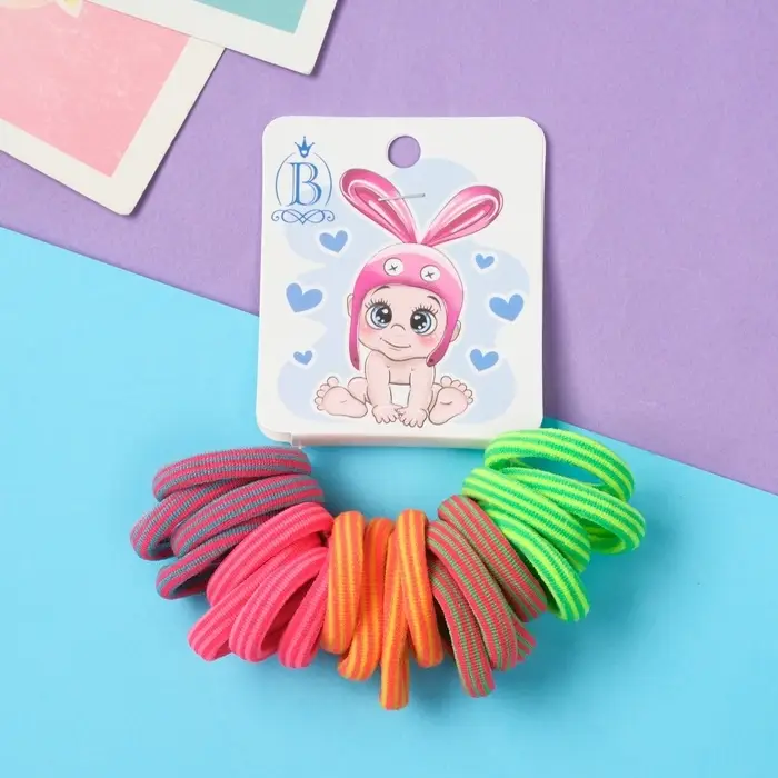 Резинка для волос "Карапуз" (набор 20 шт) ушки, 2,5 см, полоски