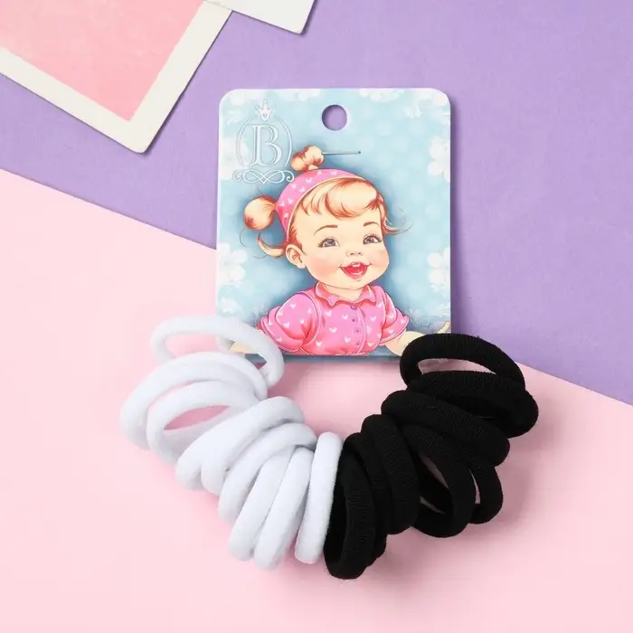 Резинка для волос "Крошка" (набор 20 шт) хвостики, 2,5 см, чёрный белый