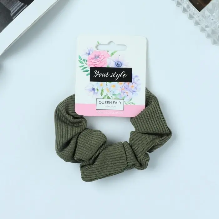 Резинка для волос "Орбита" классика полоска текстура, 9 см, зелёный