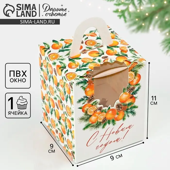 Складная коробка под один капкейк «Аромат праздника», 9 х 9 х 11 см