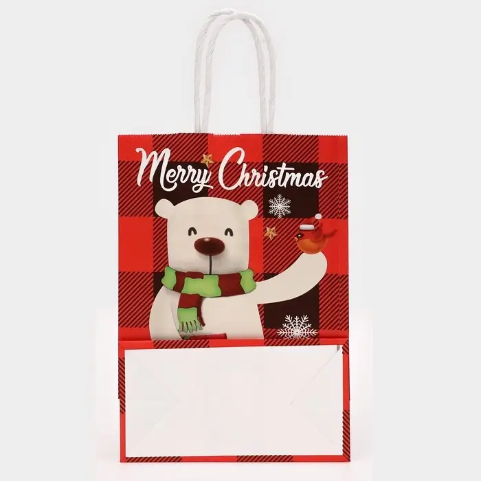 Пакет бумажный подарочный новогодний крафт «Белый Медведь» 15×21×8 см