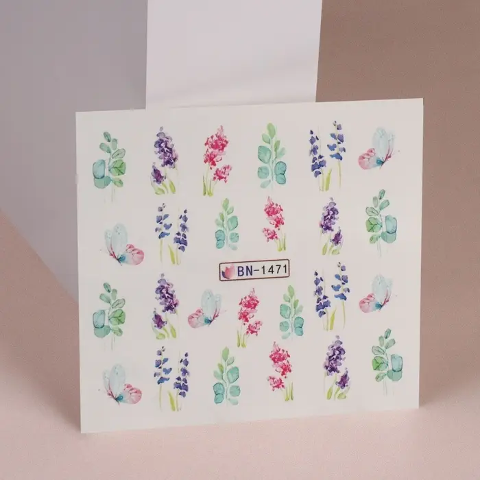 Слайдеры для ногтей «Акварельные цветы», разноцветные