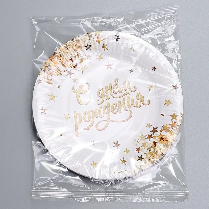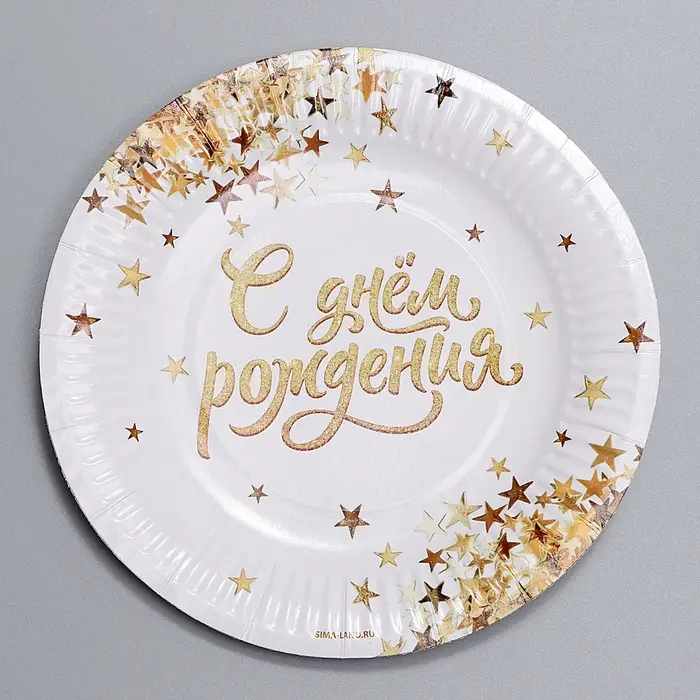 Тарелка одноразовая бумажная «С днем рождения», 18 см