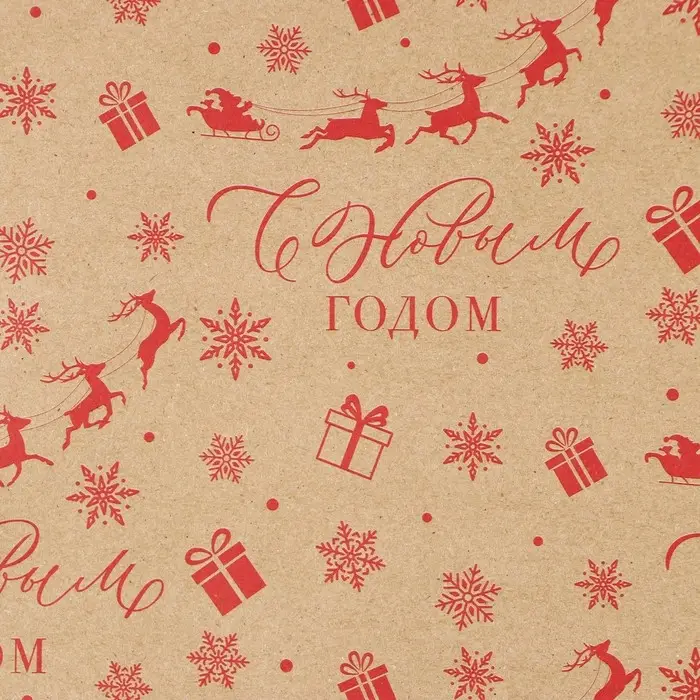 Бумага упаковочная крафтовая «С Новым годом!», 50×70 см