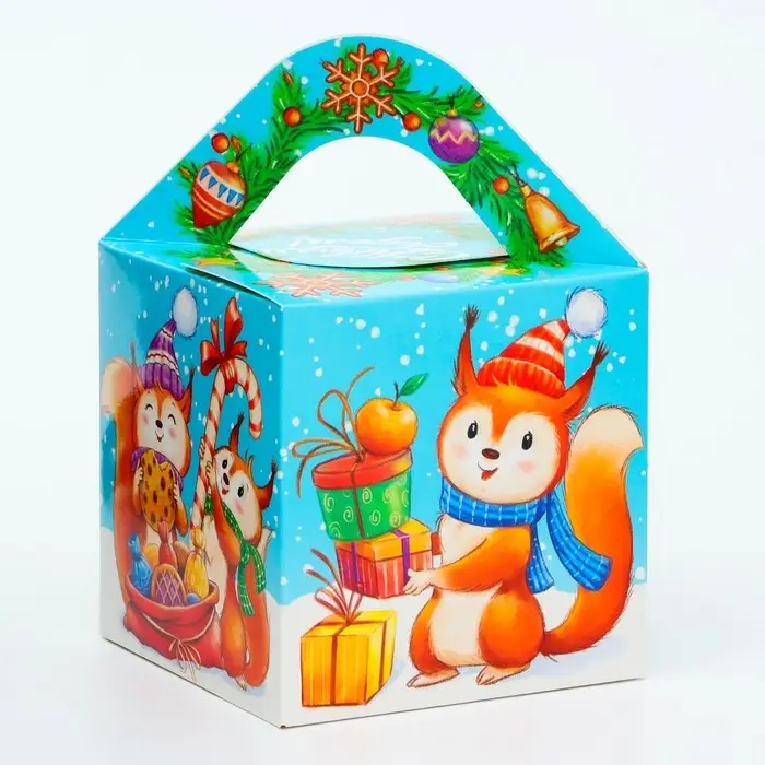 Коробка выполнена из качественных материалов, которые обеспечивают сохранность содержимого. Она имеет яркий и красочный дизайн, который отражает атмосферу Нового года.