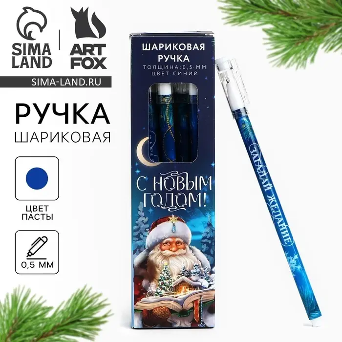 Ручка шариковая, синяя паста, 0.5 мм, пластик, с колпачком «Новый год: Загадывай желание»