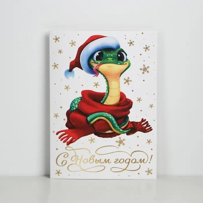 Открытка с новым годом на акварельном картоне «Змея 2025», тиснение, 11.8 х 16.4 см