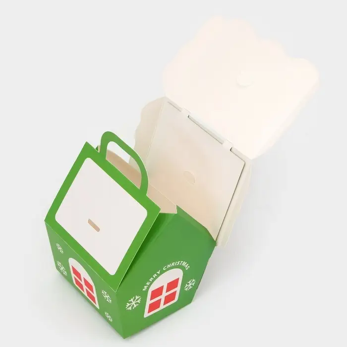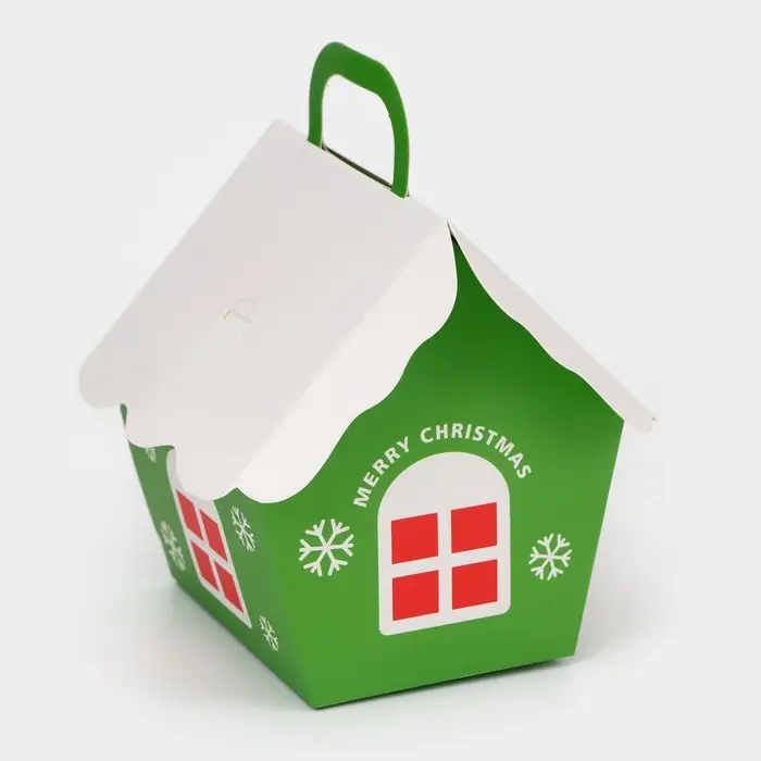 Коробка складная Новогодняя «Домик» зеленая 8.5×8.5×10 см
