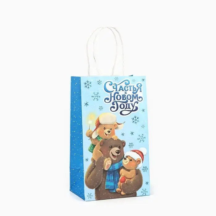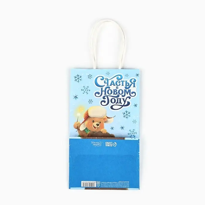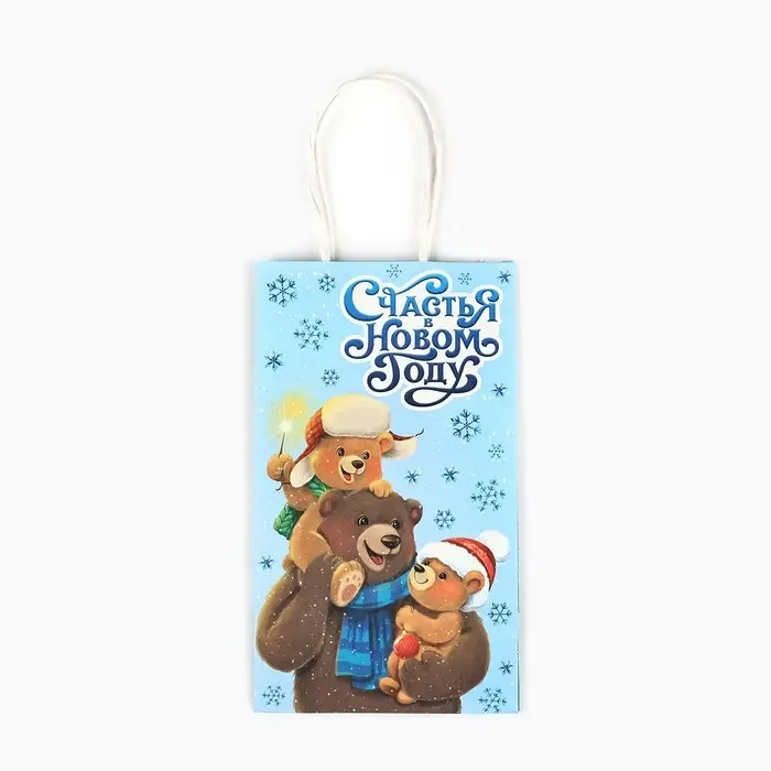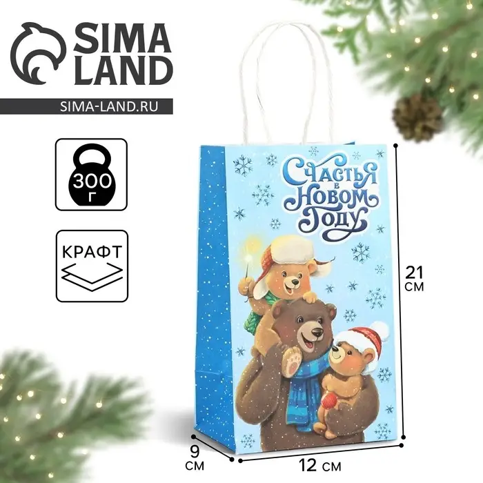 Пакет подарочный новогодний крафтовый «Счастья в новом году», 12 х 9 х 21 см