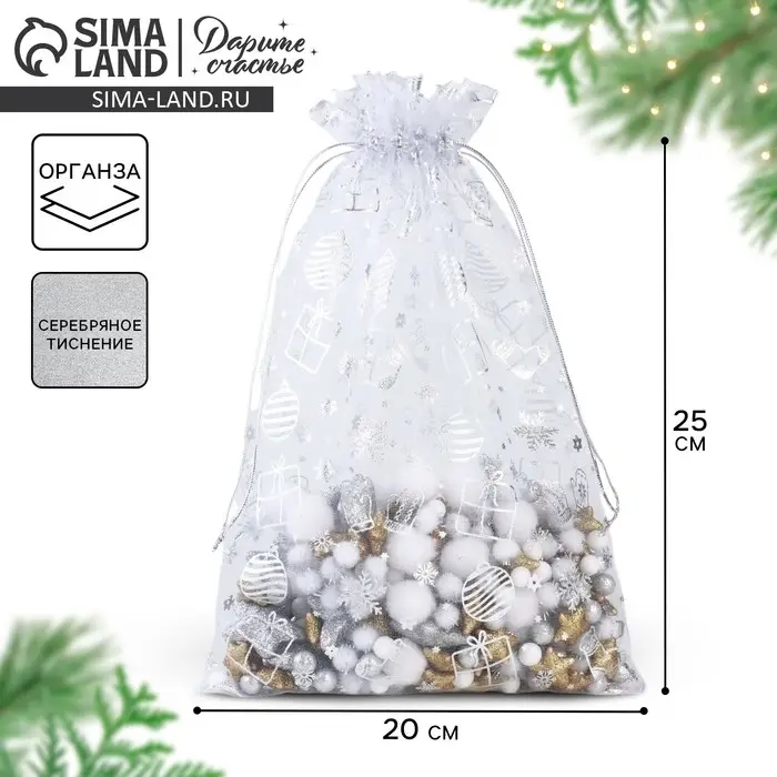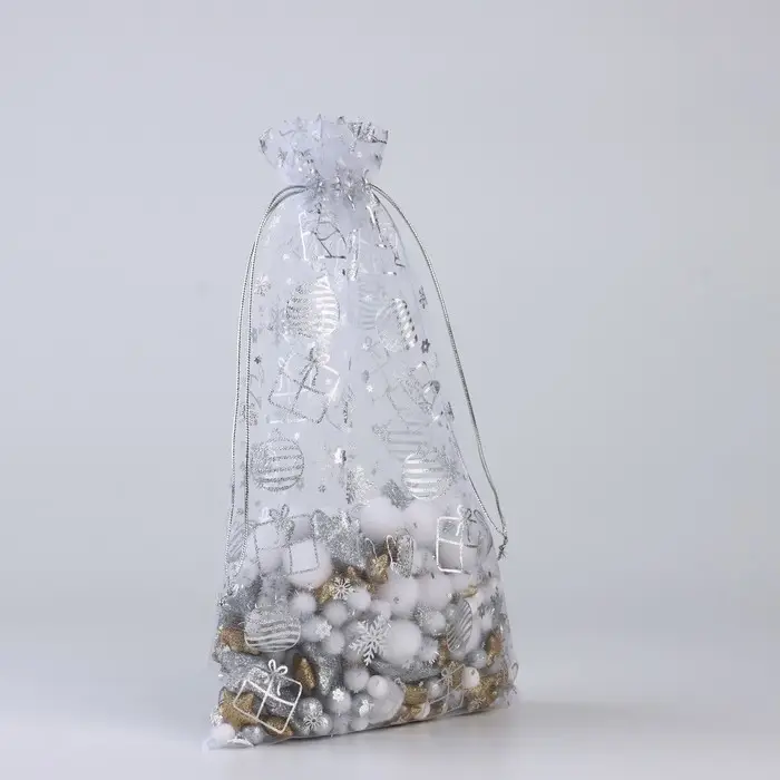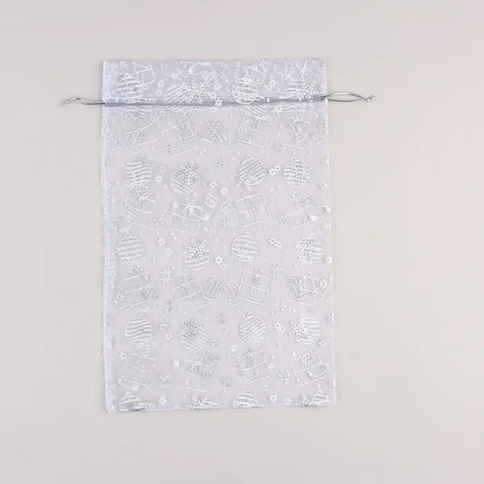 Мешочек подарочный «Новогодние подарки», органза, белый, 20 х 30 см