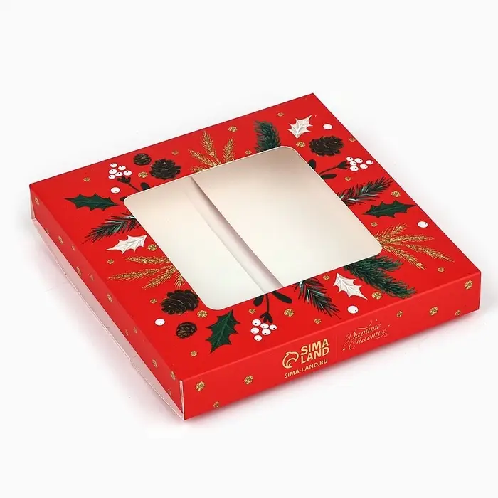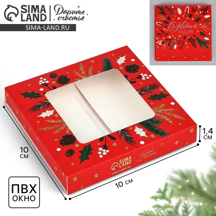 Коробка для шоколада «С Новым счастьем», с окном, 10.2 х 1.4 х 10.2 см