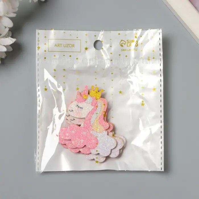 Декор для творчества войлок блеск "Единорог в облаках" 5х4,8 см