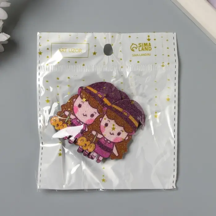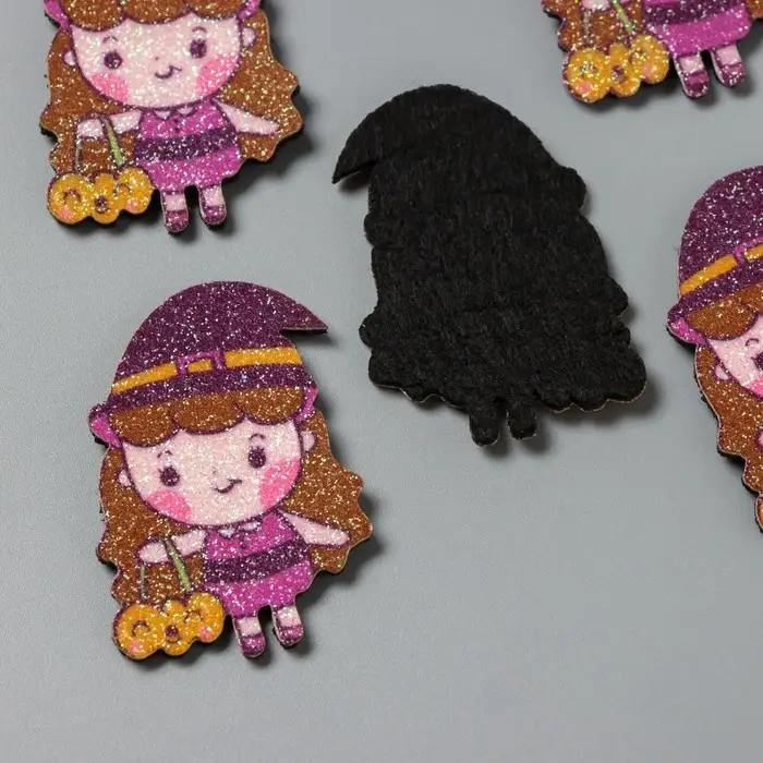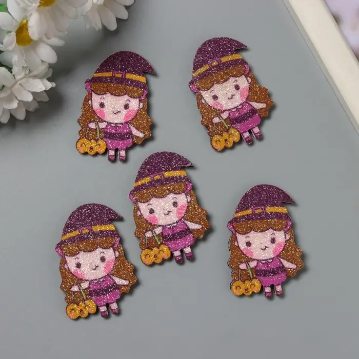 Декор для творчества войлок блеск "Ведьмочка с тыквой" 5х3,3 см