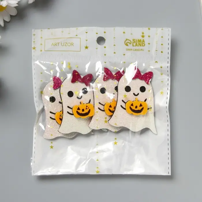 Декор для творчества войлок блеск "Приведение с тыквой" 5,5х4,5 см