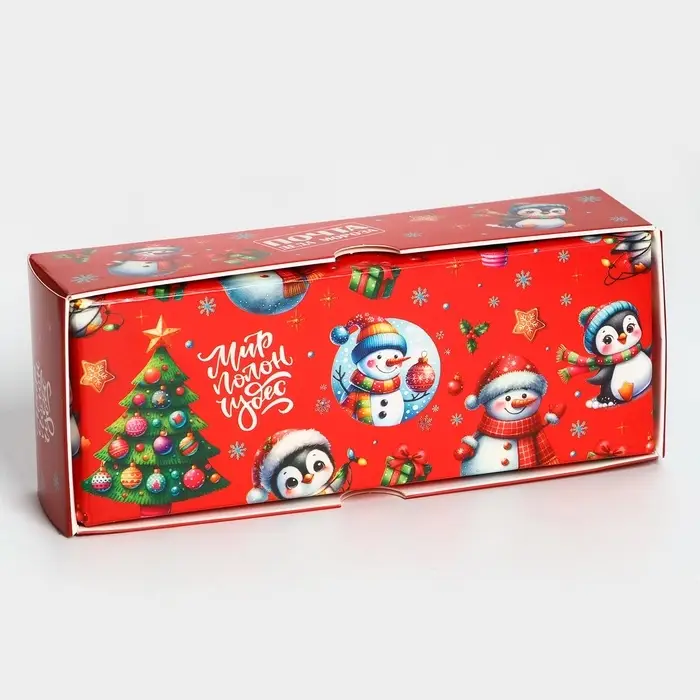 Коробка под 3 конфеты "Новогодняя" размером 13х5х3,3 см - это прекрасный выбор для упаковки сладостей к празднику. Она выполнена в ярких новогодних цветах, что создает атмосферу праздника и волшебства.