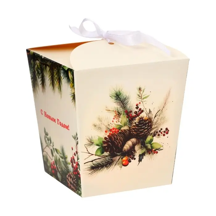 Бонбоньерка, новогодняя подарочная упаковка «Зимние шишки», 7.5×8×7.5 см