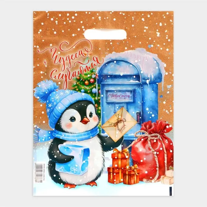Пакет «Пингвинёнок почтальон», полиэтиленовый с вырубной ручкой, 30×40 см