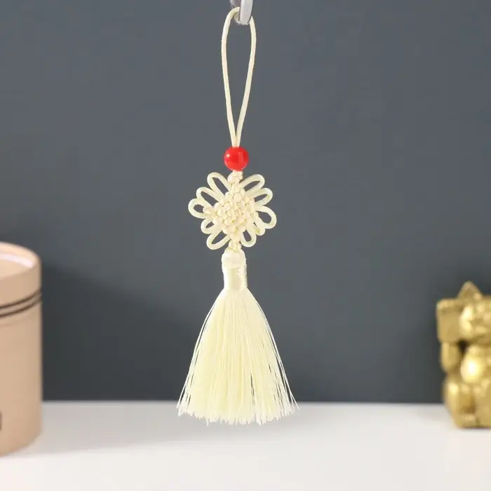 Подвеска текстиль, пластик "Узел счастья и бесконечности" бело-жёлтая 8,5 см