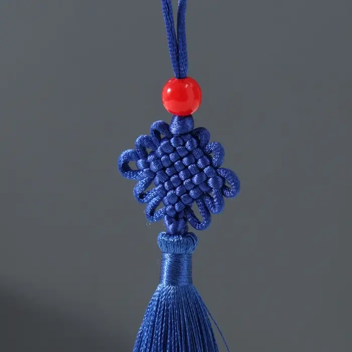 Подвеска текстиль, пластик "Узел счастья и бесконечности" ярко-синяя 8,5 см