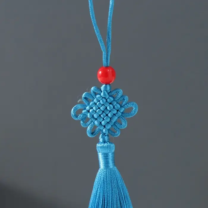 Подвеска текстиль, пластик "Узел счастья и бесконечности" голубая 8,5 см