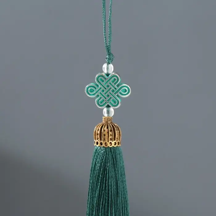 Подвеска текстиль, пластик "Узел счастья и бесконечности" тёмно-зелёная 0,7х1х9,5 см