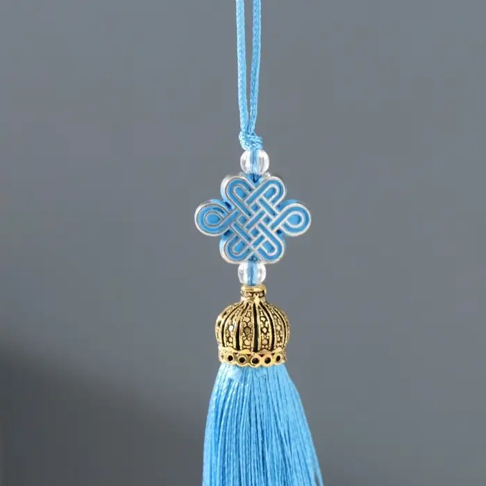 Подвеска текстиль, пластик "Узел счастья и бесконечности" синяя 0,7х1х9,5 см