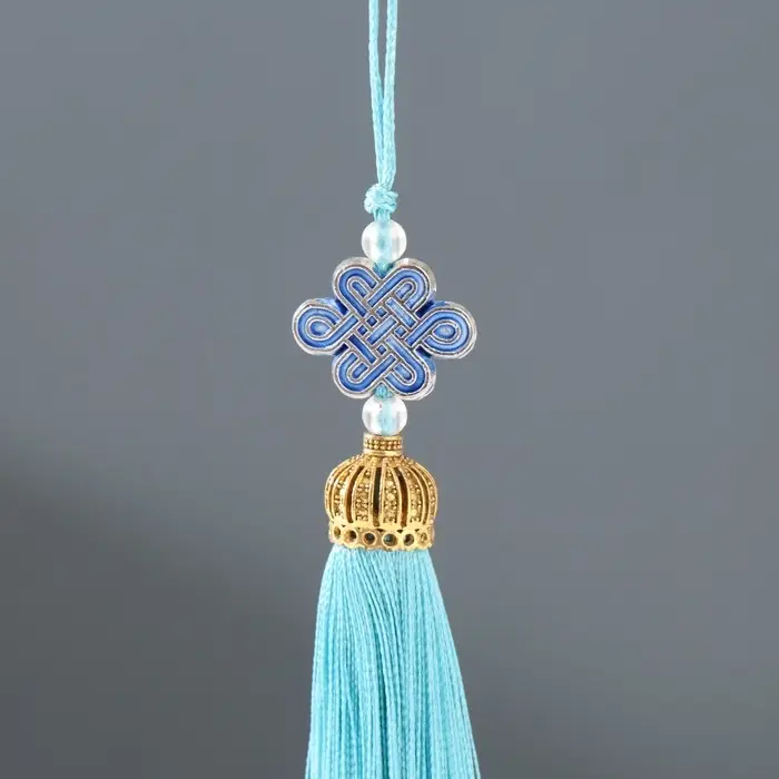 Подвеска текстиль, пластик "Узел счастья и бесконечности" индиго 0,7х1х9,5 см