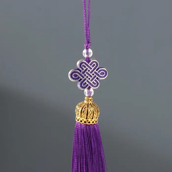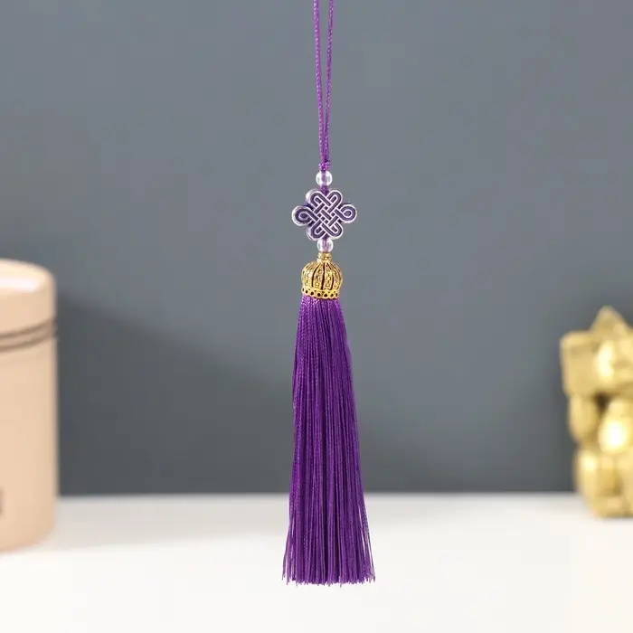 Подвеска текстиль, пластик "Узел счастья и бесконечности" фиолетовая 0,7х1х9,5 см